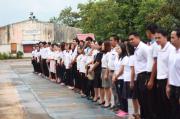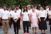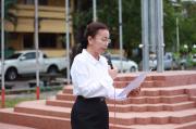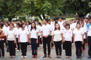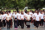 คณะครูนักเรียนโรงเรียนทรายมูลวิทยา ร่วมกันอ่านสารและยืนสงบนิ่ง เนื่องในวันสันติภาพ S:0