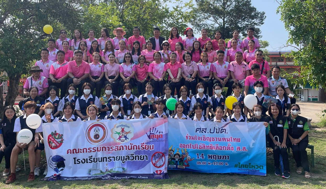 โรงเรียนทรายมูลวิทยาเดินรณรงค์เชิญชวนผู้มีสิทธิไปใช้สิทธิเลือกตั้งสมาชิกสภาผู้แทนราษฎร