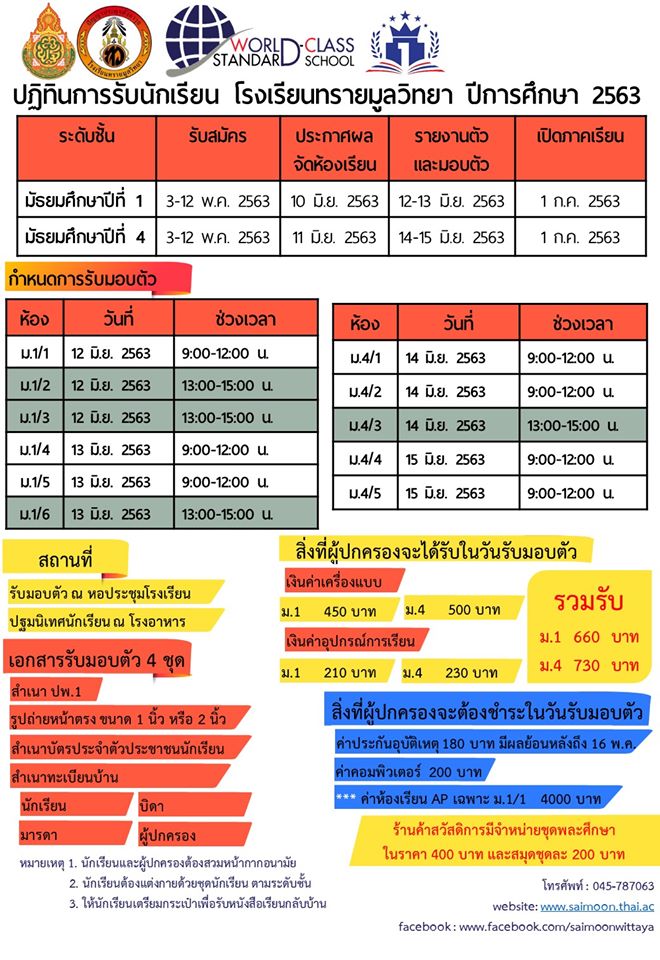 ปฏิทินการรับนักเรียน ปีการศึกษา 2563