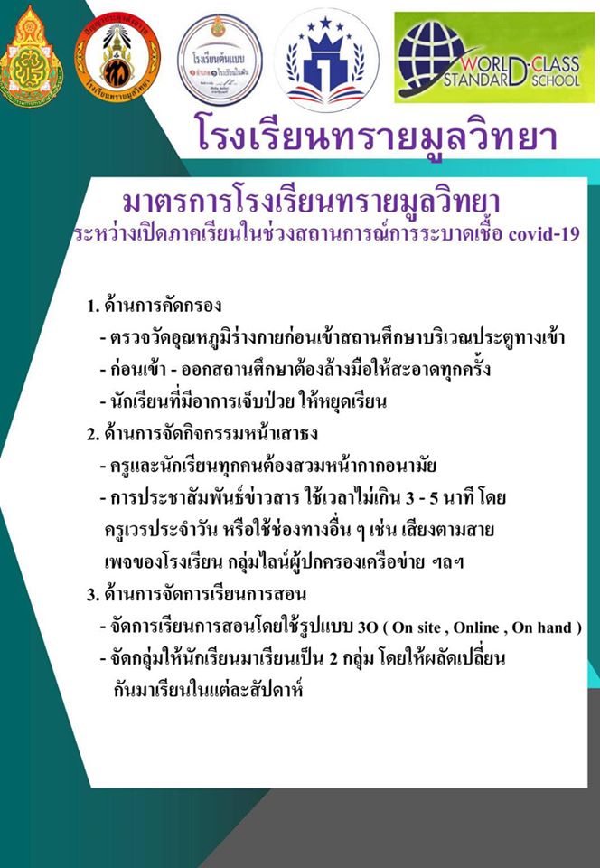 มาตรการโรงเรียนทรายมูลวิทยา ระหว่างเปิดภาคเรียนในช่วงสถานการณ์การระบาดเชื้อ covid-19