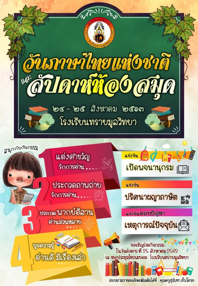 ขอเชิญชวนร่วมกิจกรรม"วันภาษาไทยแห่งชาติและสัปดาห์ห้องสมุด" ????????