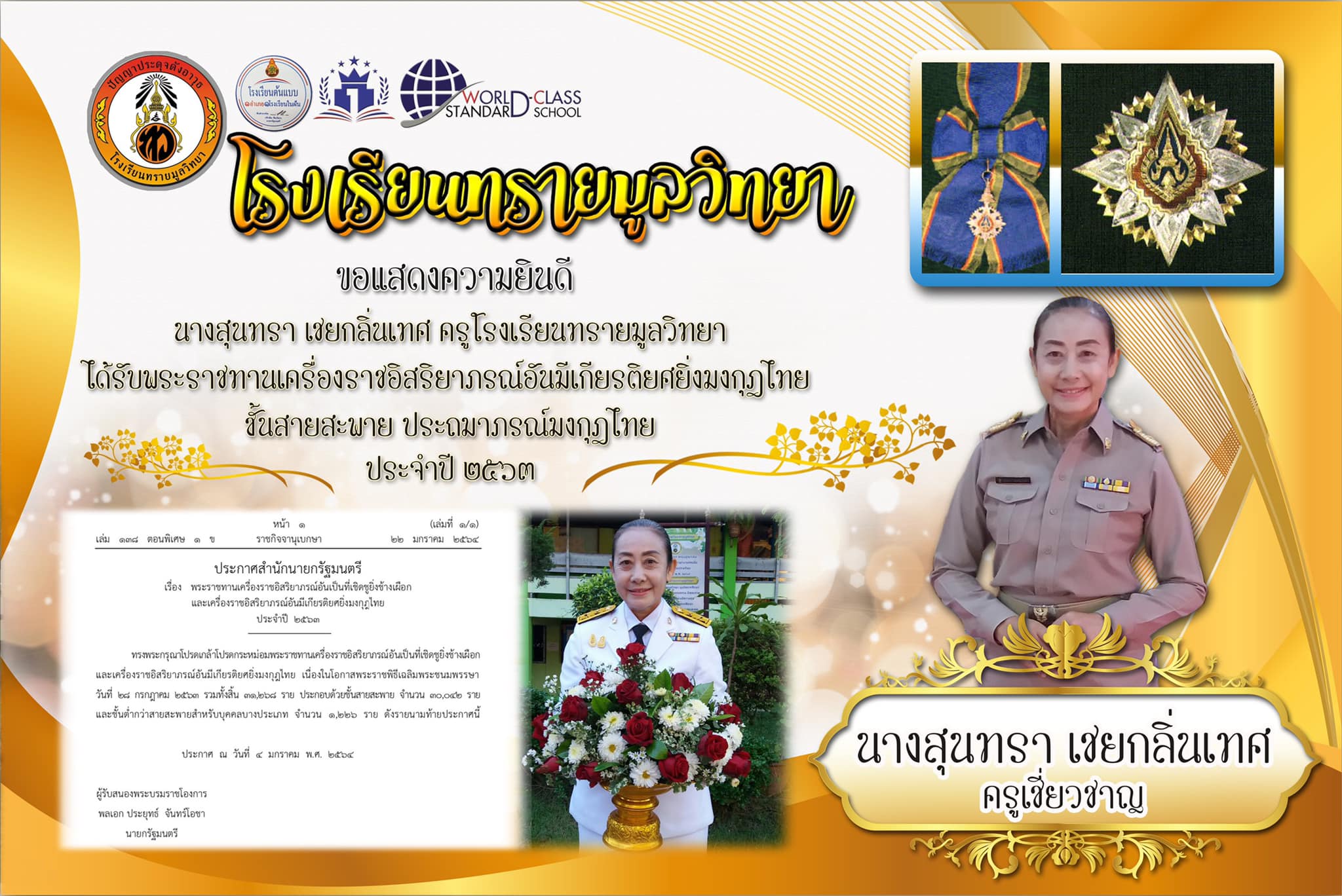 ขอแสดงความยินดี นางสุนทรา เชยกลิ่นเทศ ครูโรงเรียนทรายมูลวิทยา