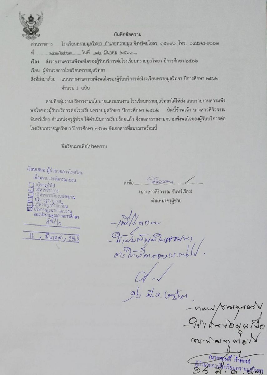 ผลสำรวจความพึงพอใจการให้บริการ ปี 2562