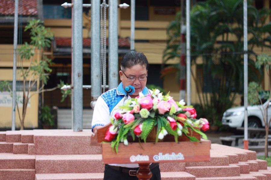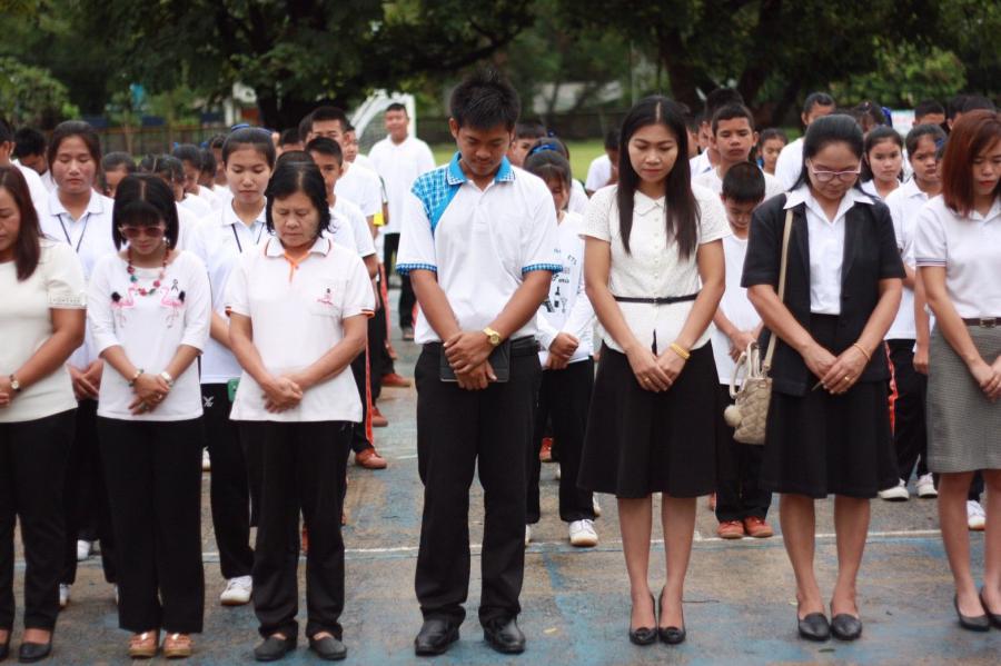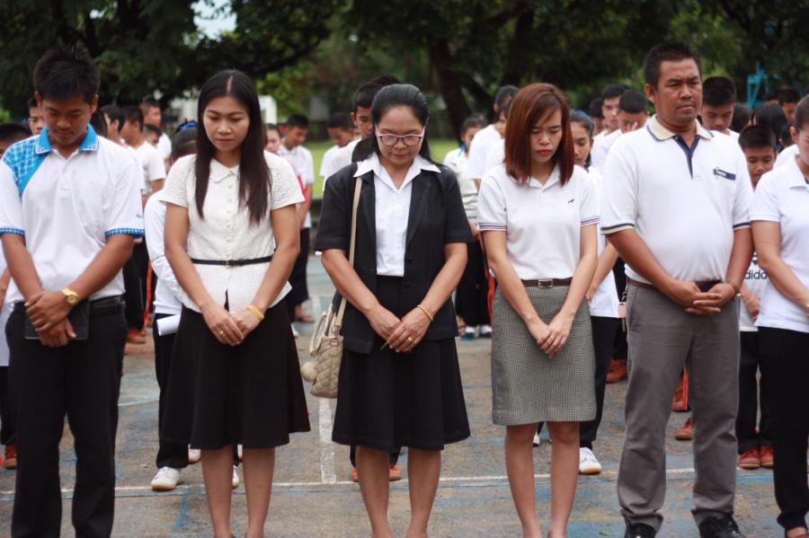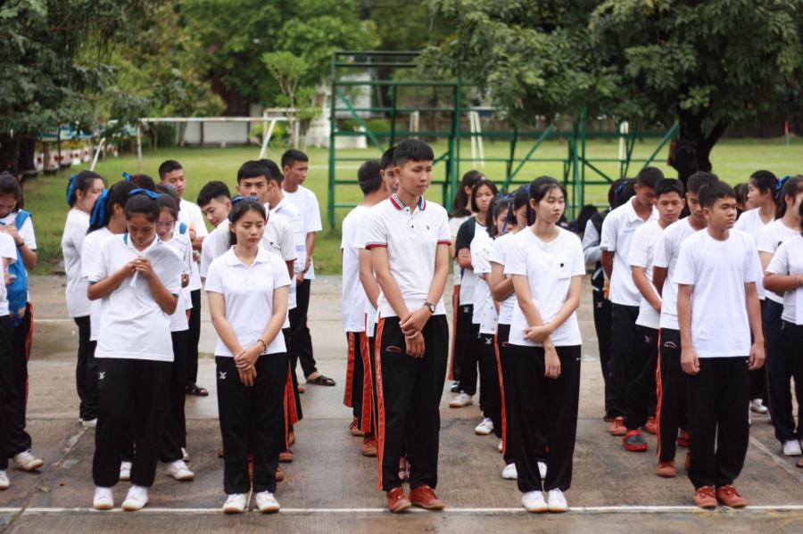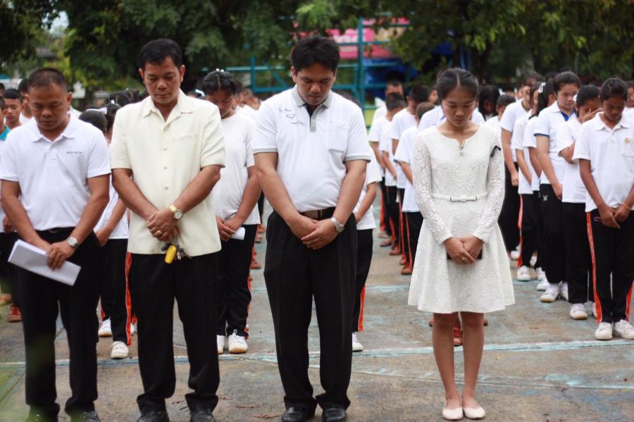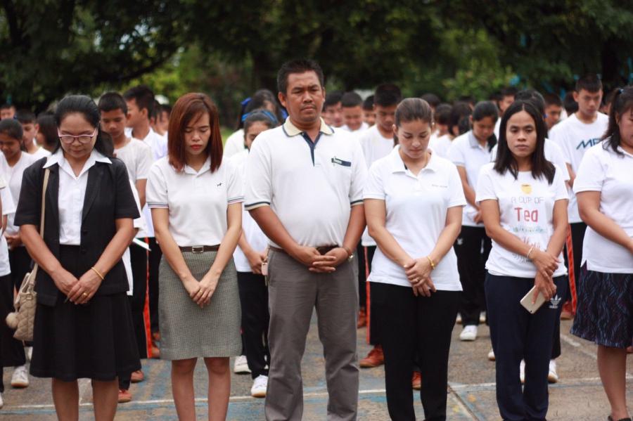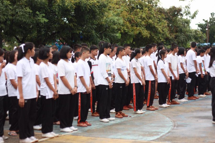 คณะครูนักเรียนโรงเรียนทรายมูลวิทยา ร่วมกันอ่านสารและยืนสงบนิ่ง เนื่องในวันสันติภาพ S:0