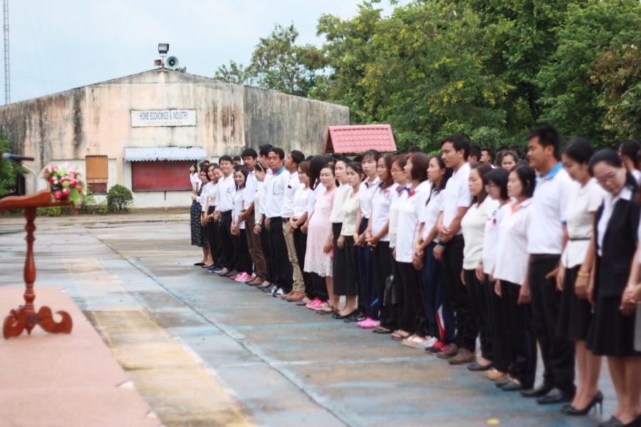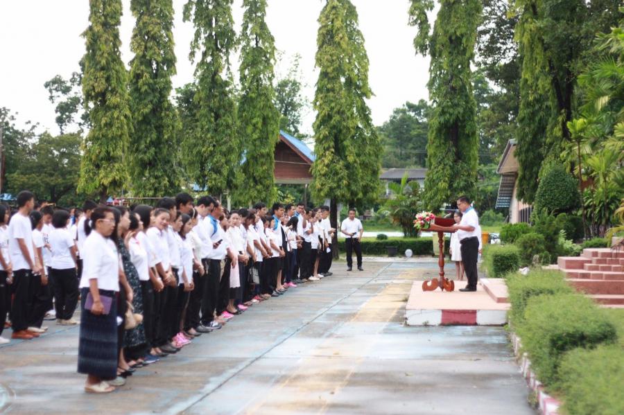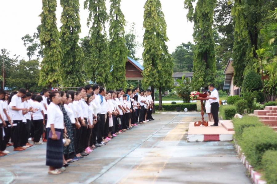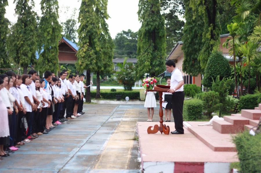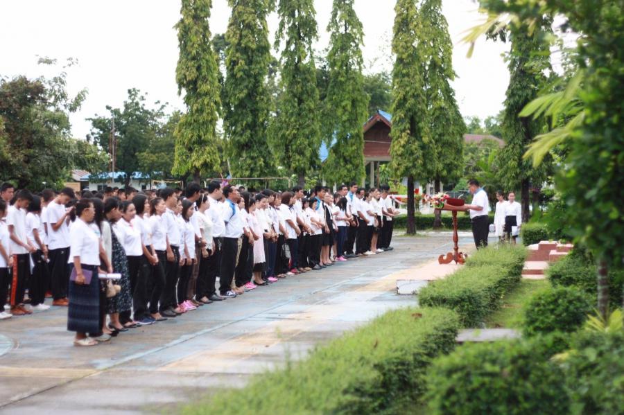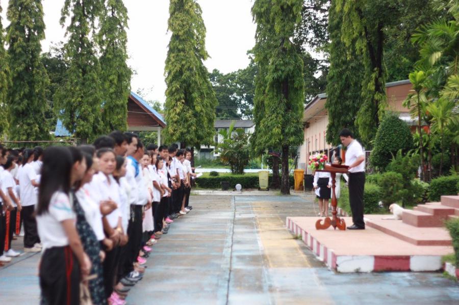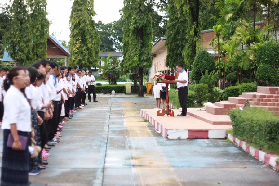 คณะครูนักเรียนโรงเรียนทรายมูลวิทยา ร่วมกันอ่านสารและยืนสงบนิ่ง เนื่องในวันสันติภาพ S:0
