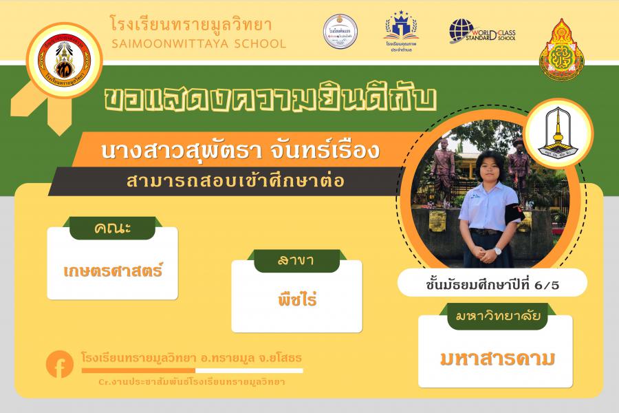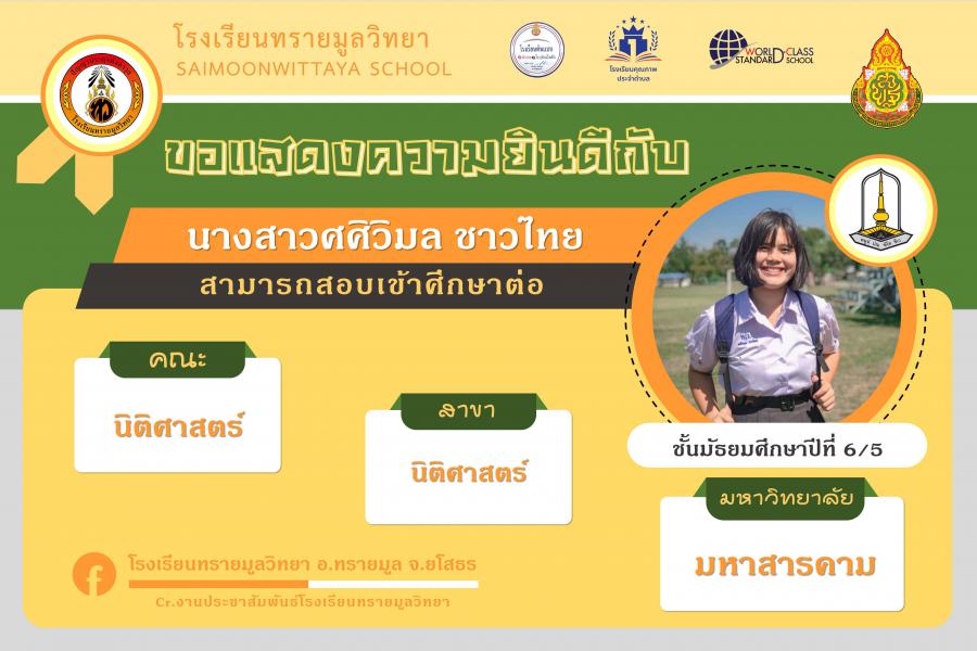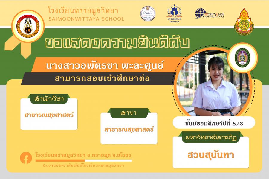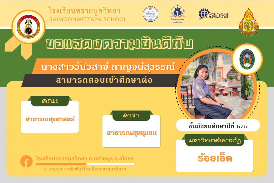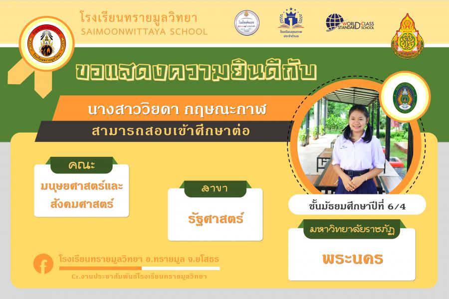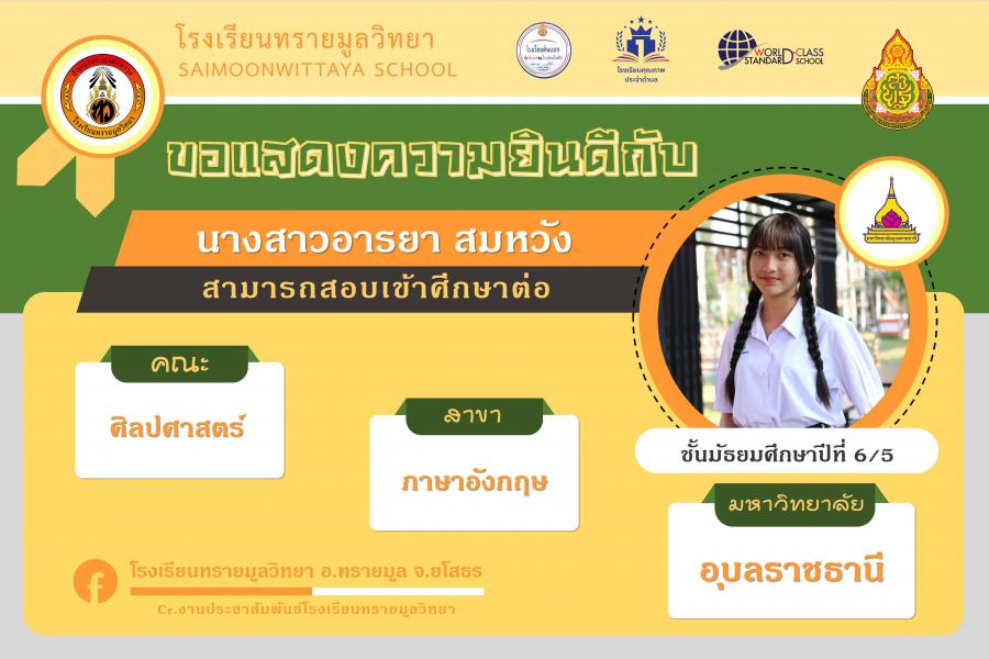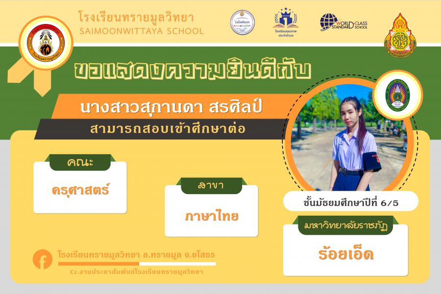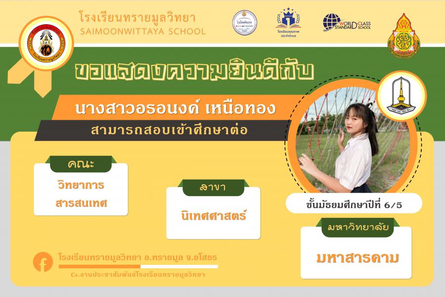 แสดงความยินกับนักเรียนได้ผ่านการคัดเลือกเข้าศึกษาต่อในระดับอุดมศึกษา ปีการศึกษา 2564 S:0