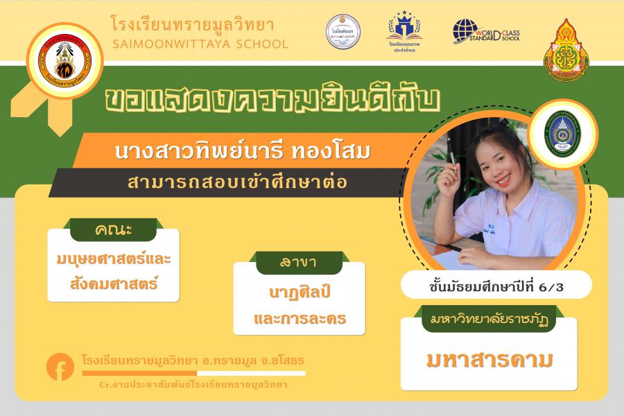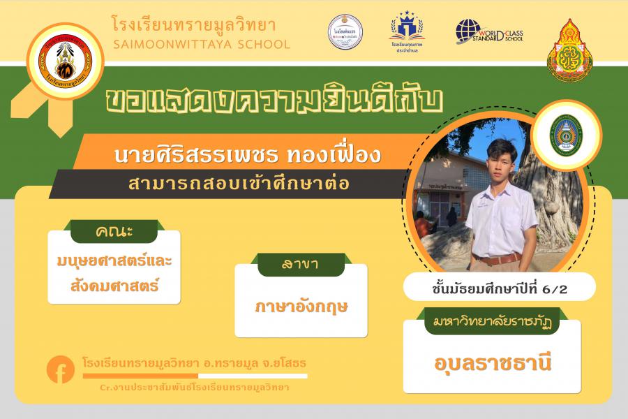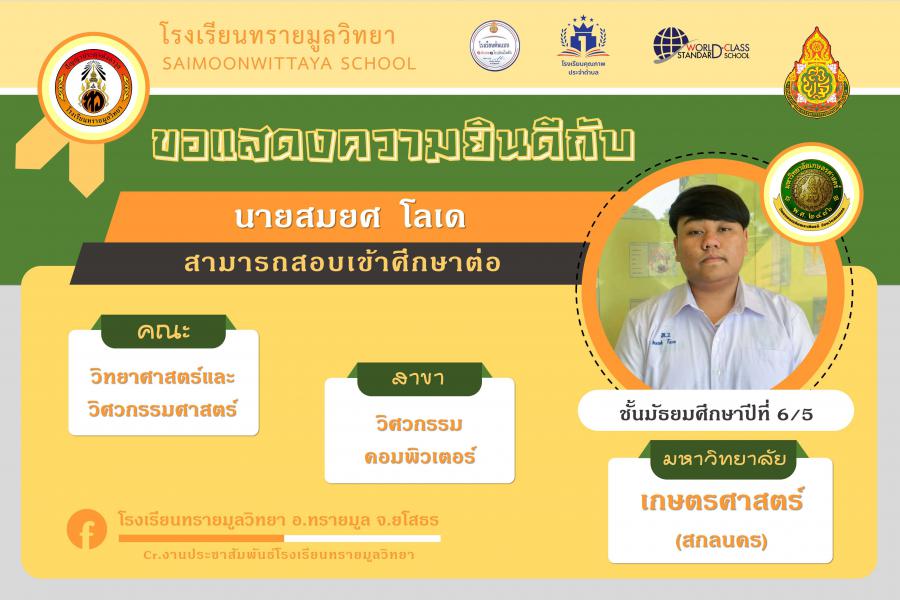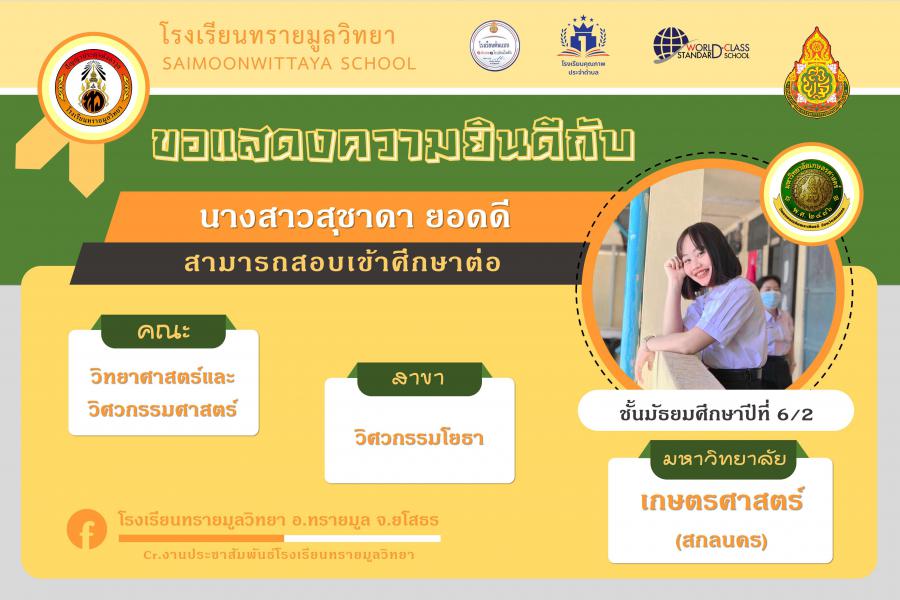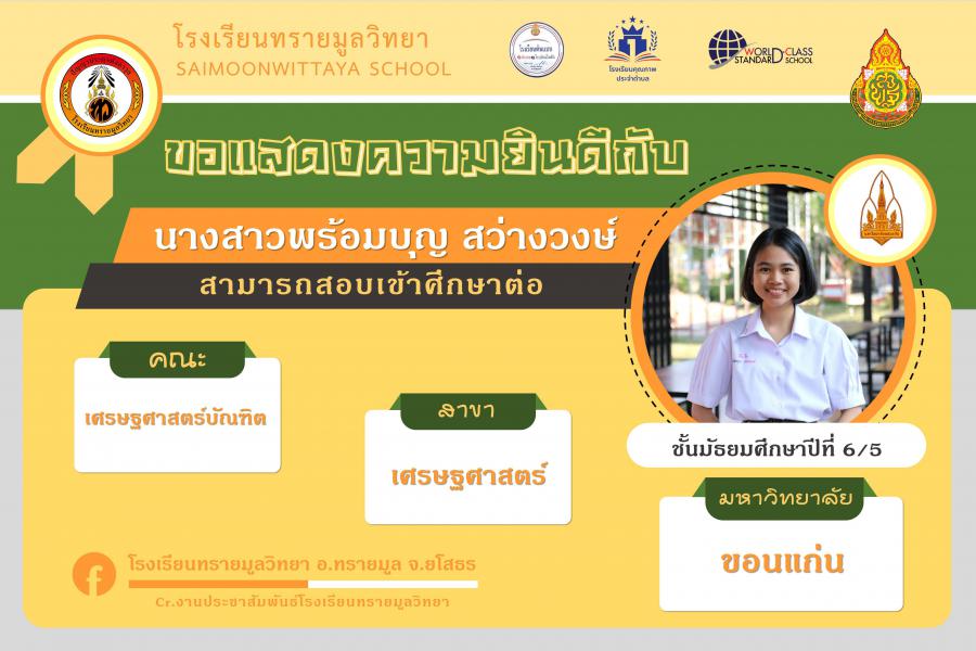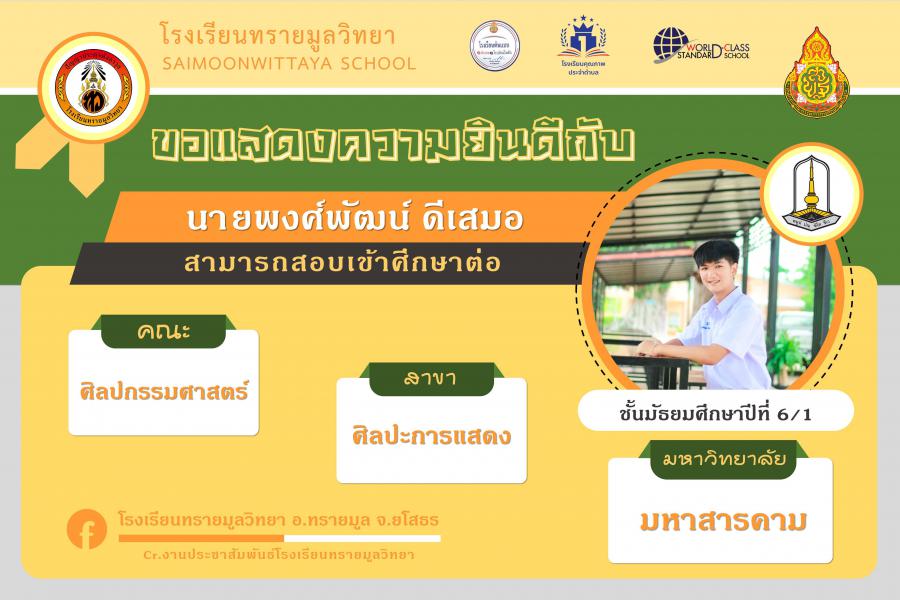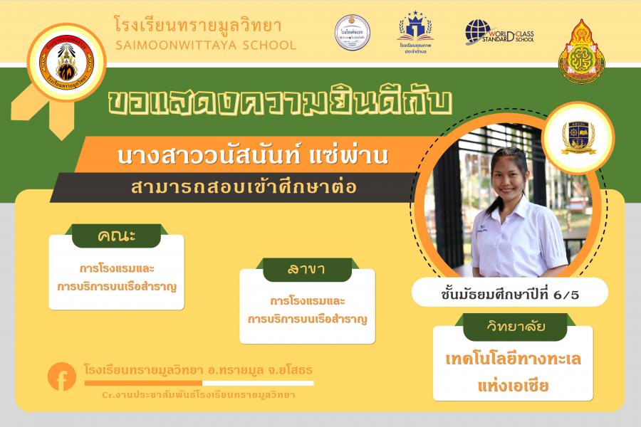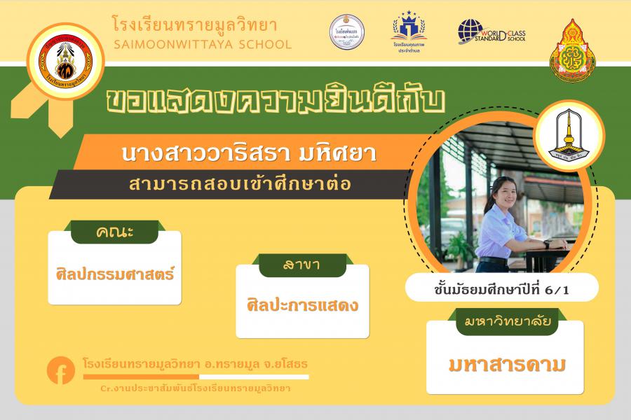 แสดงความยินกับนักเรียนได้ผ่านการคัดเลือกเข้าศึกษาต่อในระดับอุดมศึกษา ปีการศึกษา 2564 S:0