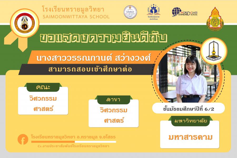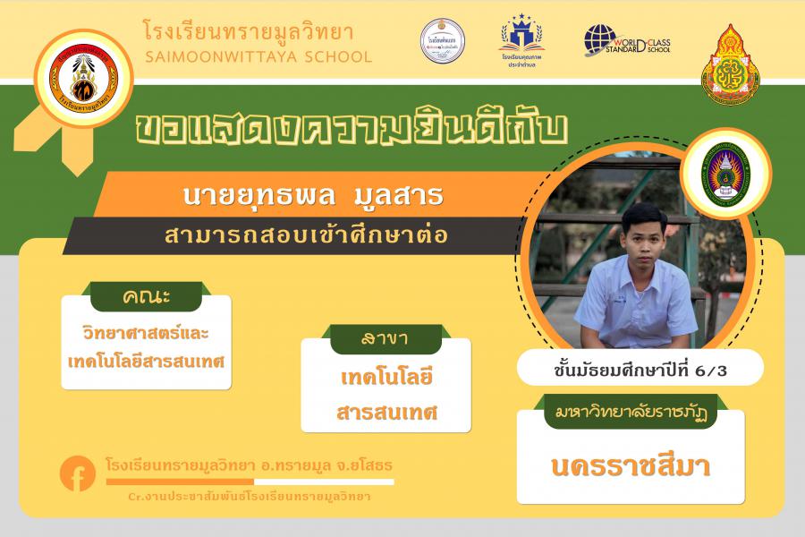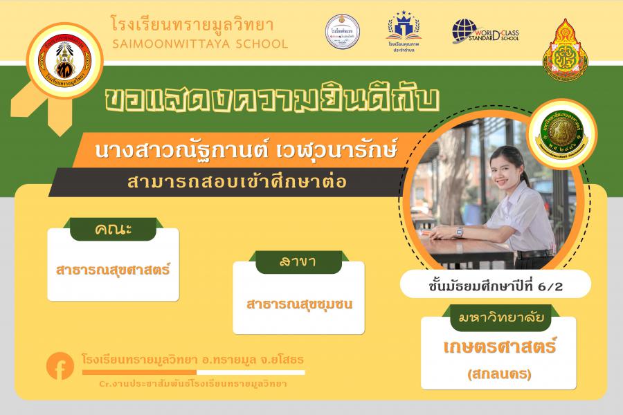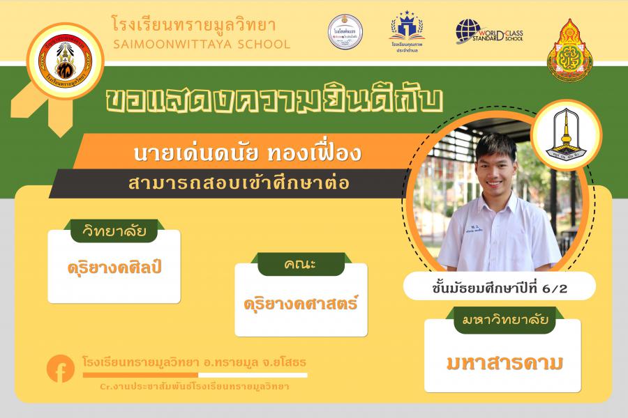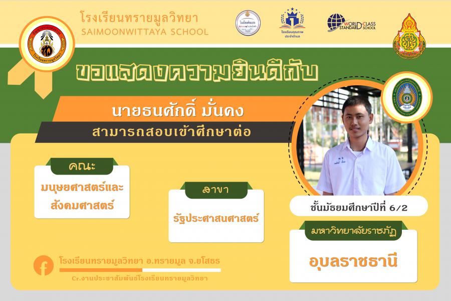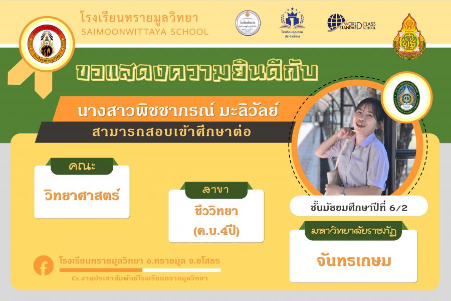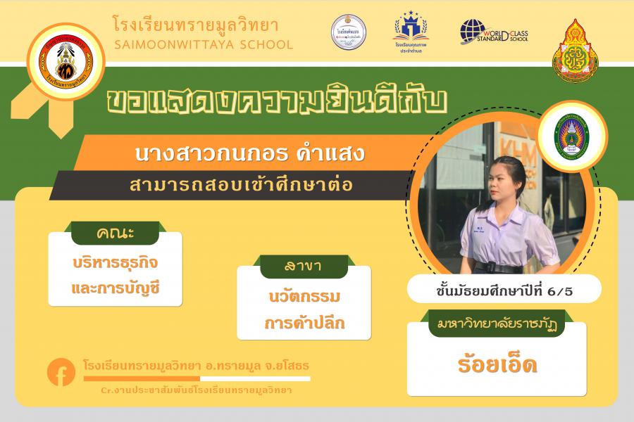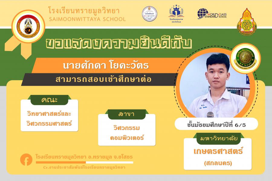 แสดงความยินกับนักเรียนได้ผ่านการคัดเลือกเข้าศึกษาต่อในระดับอุดมศึกษา ปีการศึกษา 2564 S:0